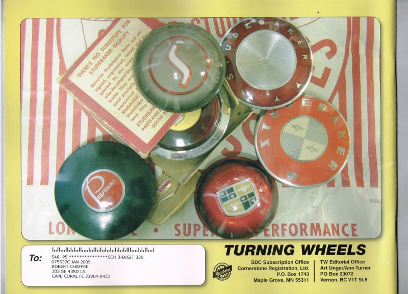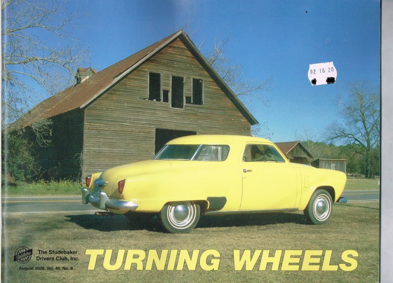Turning Wheels Magazine August 2008 Vol. 40 No. 8 Studebaker Drivers Club