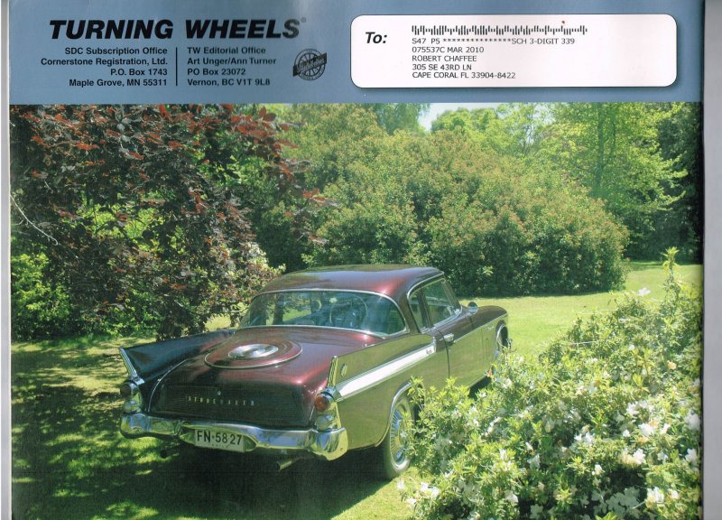 Turning Wheels Magazine June 2009 Vol. 41 No. 6 Studebaker Drivers Club