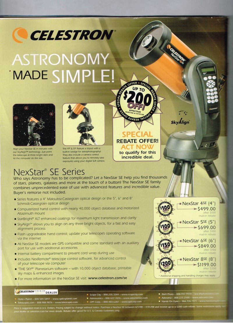 More Sports Illustrated @ www.everythingcollectibles.biz Astronomy Magazine August 2008. This Magazine is in good condition no ripped torn or missing pages no writing in or on the program if you have any further questions please don't hesitate to ask!