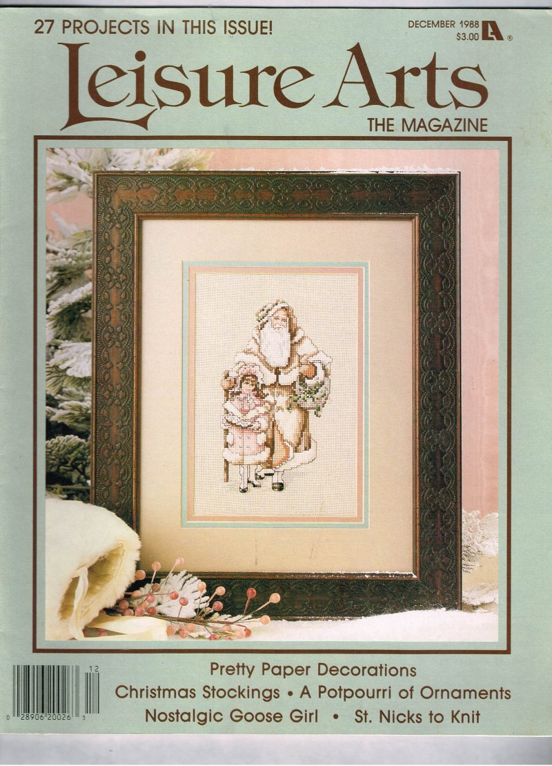 More Magazines @ www.everythingcollectibles.biz Leisure Arts Magazine December 1988. This Magazine is in good condition no ripped torn or missing pages no writing in or on the magazine if you have any further questions please don't hesitate to ask!