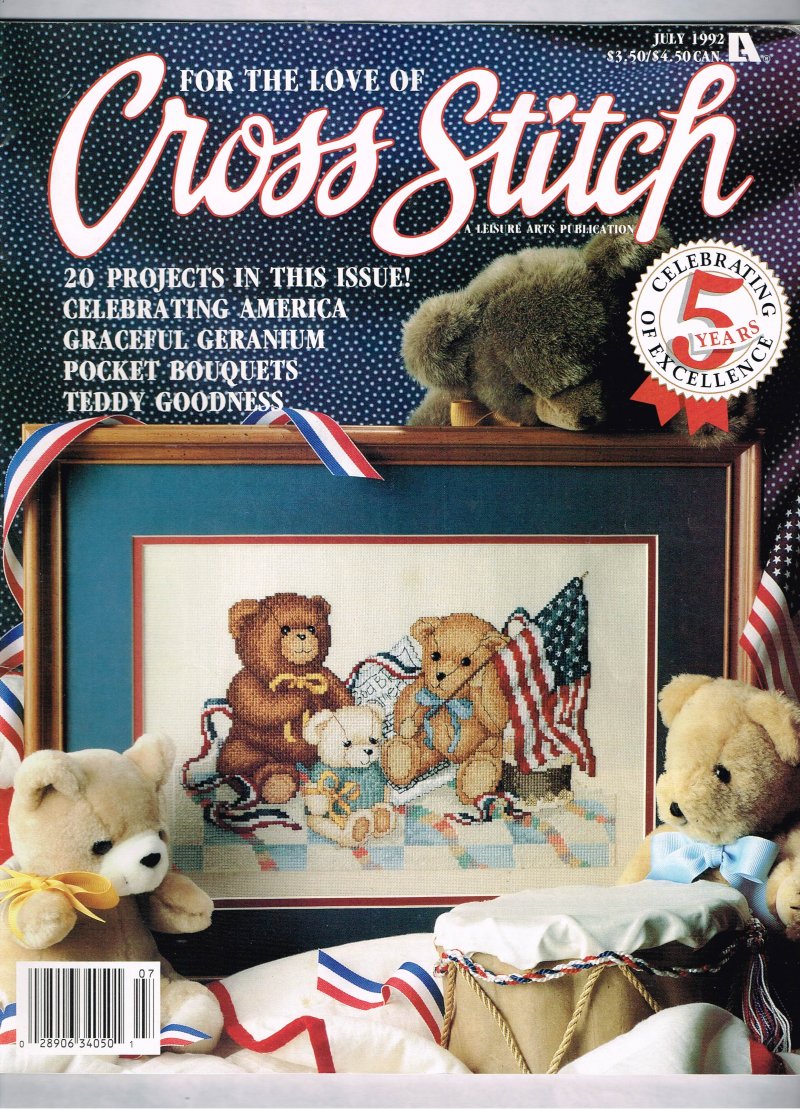 For The Love Of Cross Stitch magazine July 1992. This Magazine is in good condition no ripped torn or missing pages no writing in or on the Magazine if you have any further questions please don't hesitate to ask!