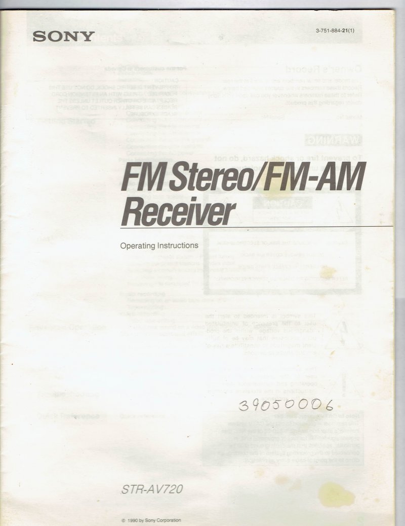 Sony FM Stereo FM AM receiver Operating Instructions Manual Model STR-AV720