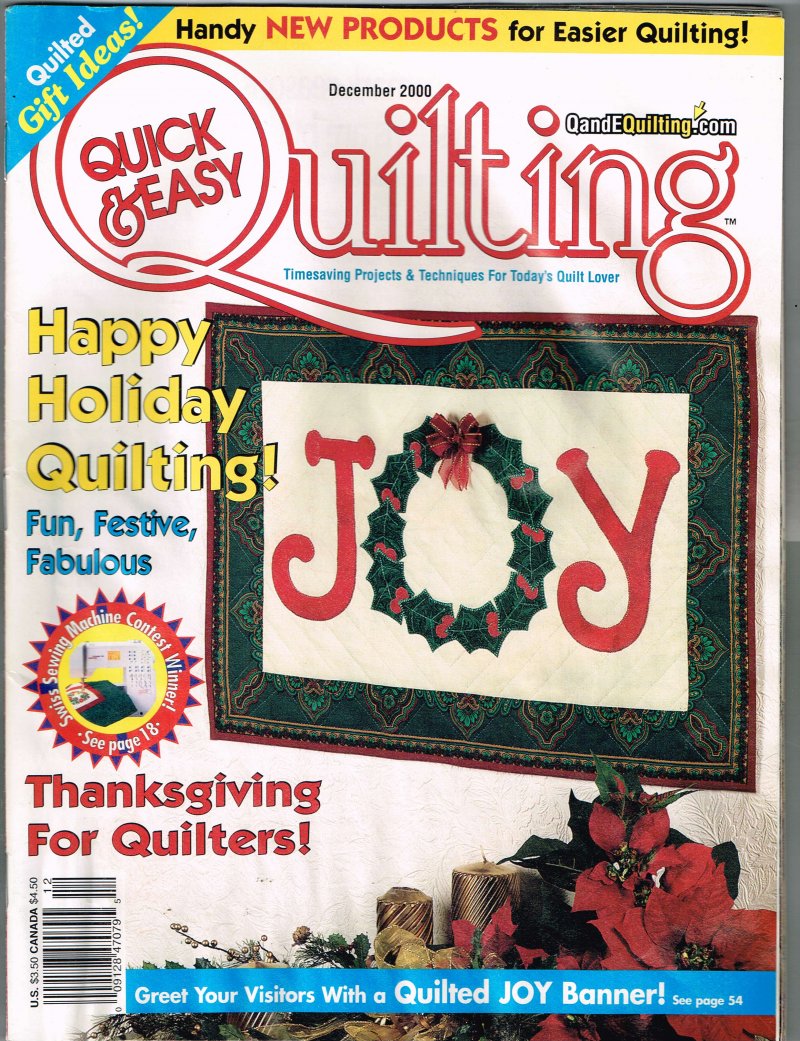 More Magazines @ www.everythingcollectibles.biz Quick and Easy Quilting Magazine December 2000. This Magazine is in good condition no ripped torn or missing pages no writing in or on the magazine if you have any further questions please don't hesitate to ask!