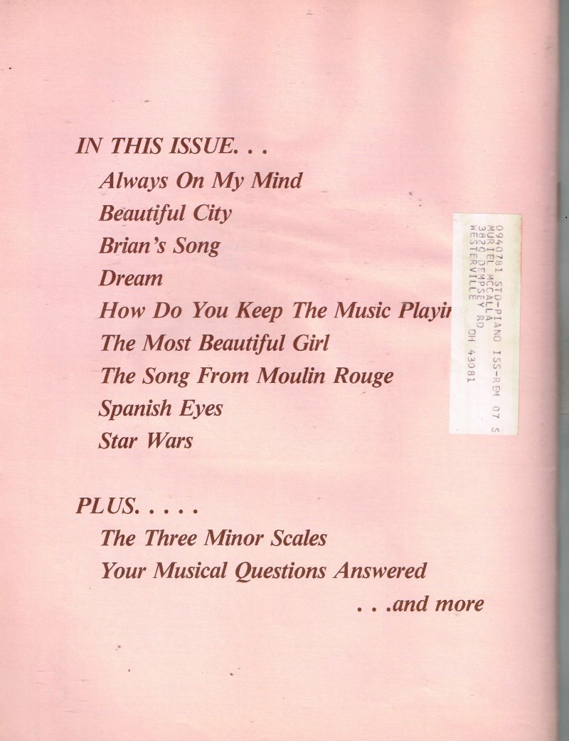 Sheet Music Magazine Standard Piano organ Guitar June July 1984