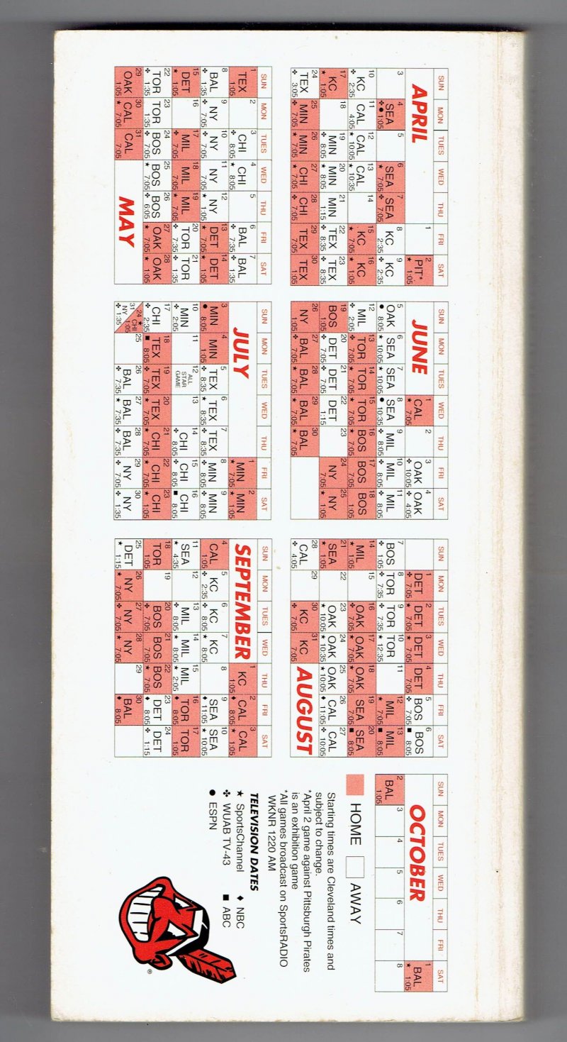 1994 Cleveland Indians Media Guide MLB Baseball