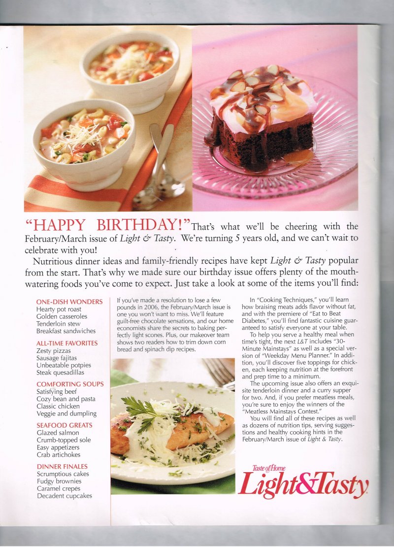 More Magazines @ www.everything-collectibles.com Taste Of Home Light and Tasty Magazine December January 2006. This Magazine is in good condition no ripped torn or missing pages no writing in or on the program if you have any further questions please don't hesitate to ask!