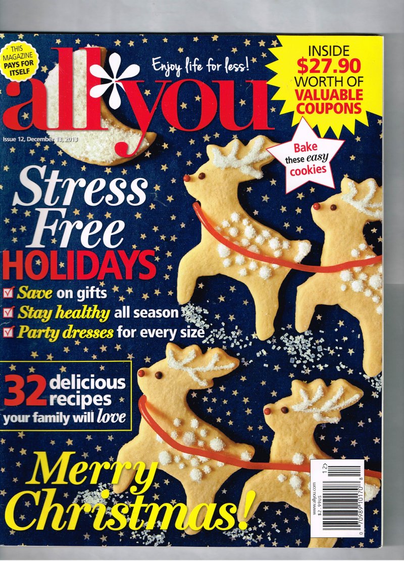 More Magazines @ www.everything-collectibles.com All You Magazine Issue 12 December 13th 2013. This Magazine is in good condition no ripped torn or missing pages no writing in or on the Magazine if you have any further questions please don't hesitate to ask!
