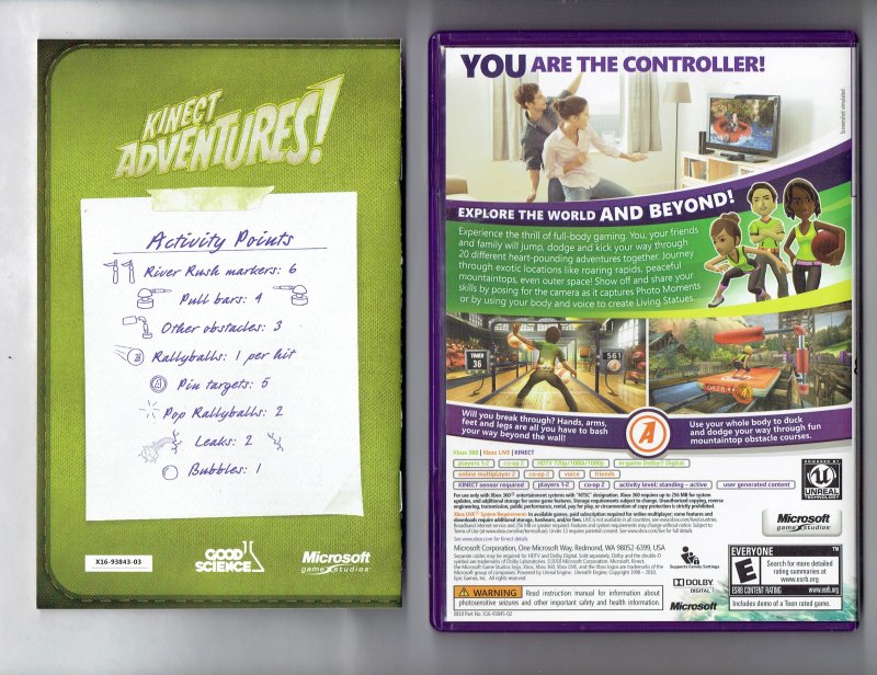 more great Video Games @ www.everything-collectibles.com Nintendo Wii Kinect Adventures video Game Complete (disc Case and Manual). This Video Game is in good used condition as you can see from the picture tested and works. if you have any further questions please don't hesitate to ask! if your order is over $50 Shipping is FREEE within The U.S.!!!