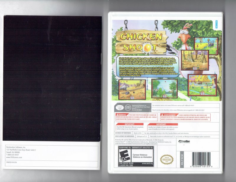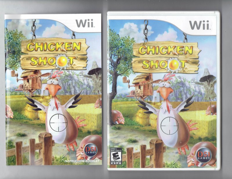 more great Video Games @ www.everything-collectibles.com Nintendo Wii Chicken Shoot video Game Complete (disc Case and Manual). This Video Game is in good used condition as you can see from the picture tested and works. if you have any further questions please don't hesitate to ask! if your order is over $50 Shipping is FREEE within The U.S.!!!