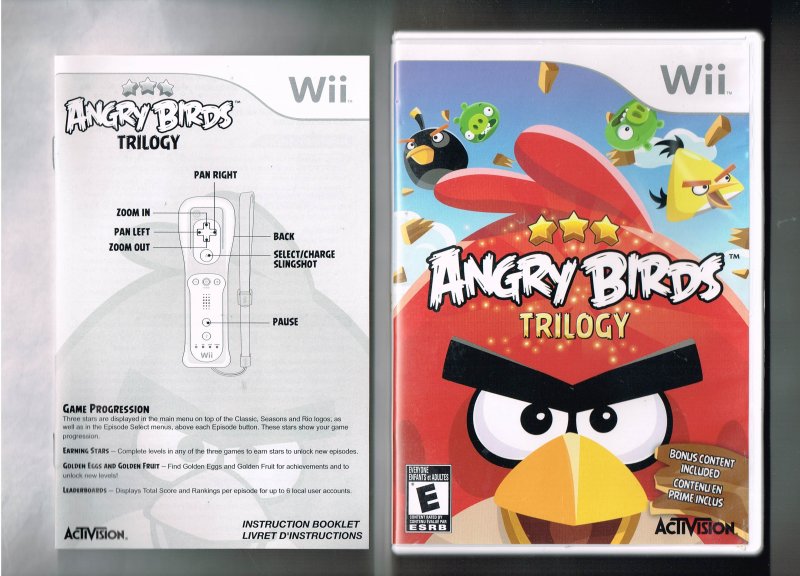 more great Video Games @ www.everything-collectibles.com Nintendo Wii Angry Birds Trilogy video Game Complete (disc Case and Manual). This Video Game is in good used condition as you can see from the picture tested and works. if you have any further questions please don't hesitate to ask! if your order is over $50 Shipping is FREEE within The U.S.!!!