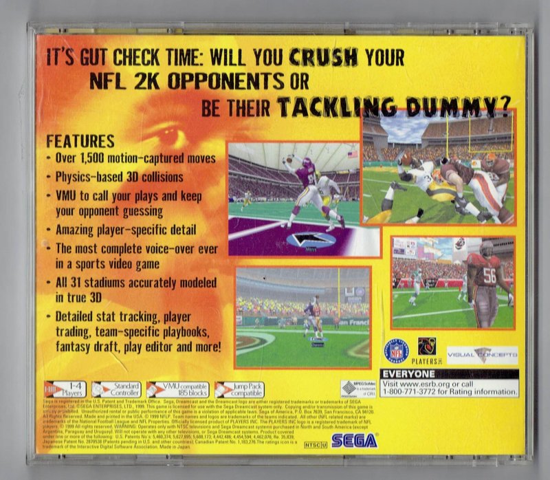 Sega Dreamcast Sega Sports NFL 2k Video Game Complete