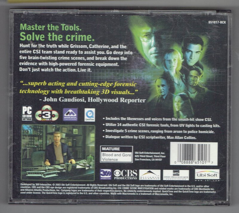 more great Video Games @ www.everything-collectibles.com Vintage Rare and Hard to find CSI Crime Scene Investigation Competition PC Game UBISOFT. This Video Game is in good used condition as you can see from the picture tested and works. if you have any further questions please don't hesitate to ask! if your order is over $50 Shipping is FREE within The U.S.!!!