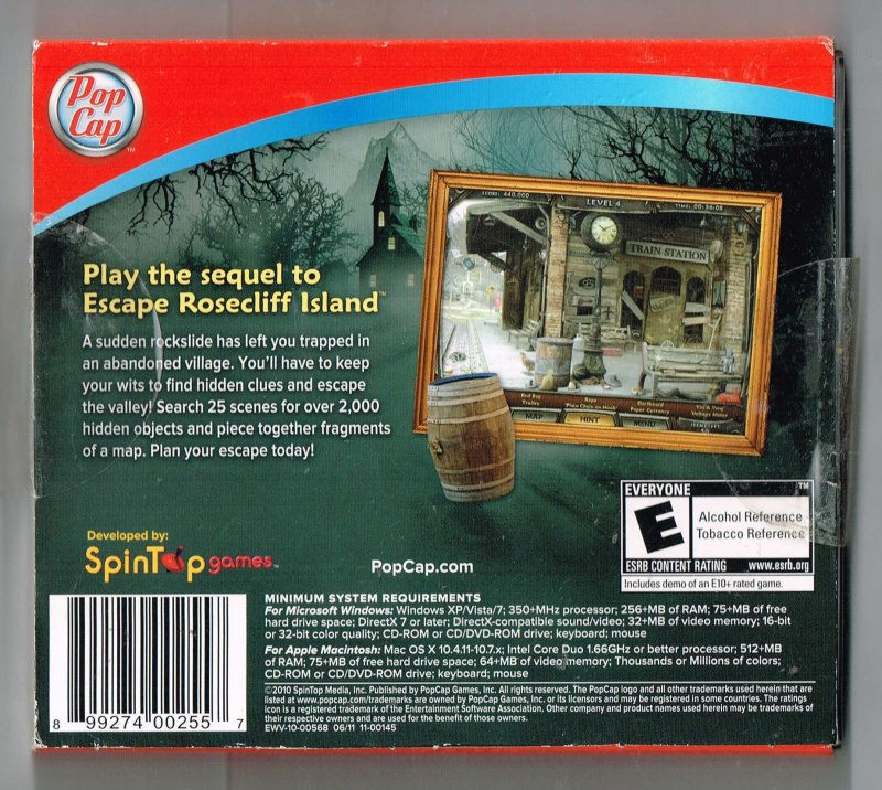 more great Video Games @ www.everything-collectibles.com Escape Whisper Valley PC Game. This Video Game is in good used condition as you can see from the picture tested and works. if you have any further questions please don't hesitate to ask! if your order is over $50 Shipping is FREEE within The U.S.!!!