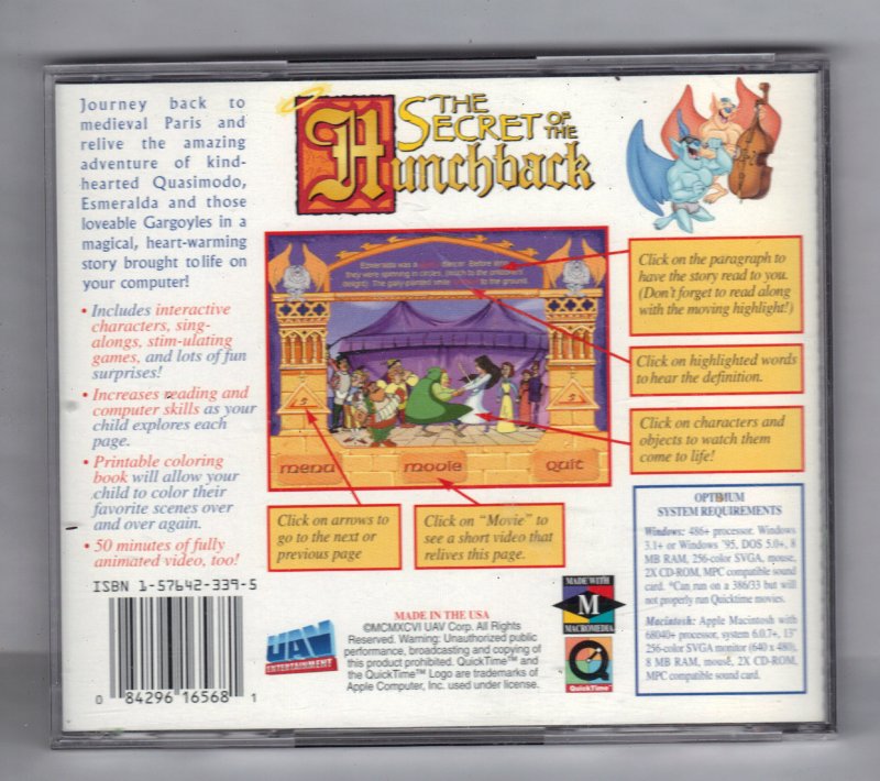 more great Video Games @ www.everything-collectibles.com The Secret of the Huntchback PC Game UAV Entertainment. This Video Game is in good used condition as you can see from the picture tested and works. if you have any further questions please don't hesitate to ask! if your order is over $50 Shipping is FREEE within The U.S.!!!