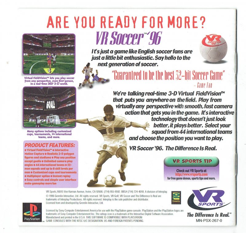 more great Video Games @ www.everything-collectibles.com VR Golf 97 Manual Only Sony PlayStation. in Good used condition as you can see from the picture tested and works. if you have any further questions please don't hesitate to ask! if your order is over $50 Shipping is FREEE within The U.S.!!!