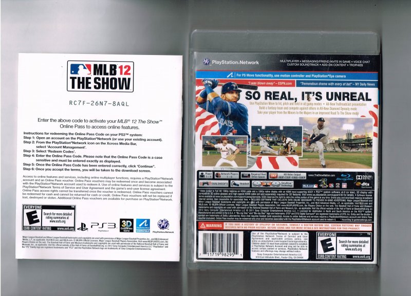 MLB 12: The Show PS3 Game PlayStation 3 CIB (Disc Case Manual). This Video Game is in good used condition as you can see from the picture tested and works. if you have any further questions please don't hesitate to ask! Flat $5 shipping No Matter if you purchase 1 or 100 shipping is only $5 and if your order is over $50 Shipping is FREEE!!!
