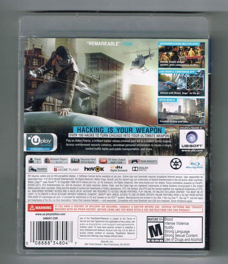 Watch Dogs PS3 Game PlayStation 3 Disc and Case