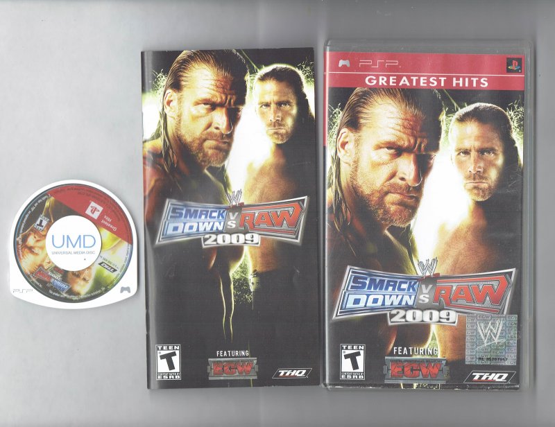 WWE Smackdown Vs. Raw 2009 Greatest Hits PSP Game PlayStation Portable CIB (Case Manual Disc). This Video Game is in good used condition as you can see from the picture tested and works. if you have any further questions please don't hesitate to ask! Flat $5 shipping No Matter if you purchase 1 or 100 shipping is only $5 and if your order is over $50 Shipping is FREEE!!!