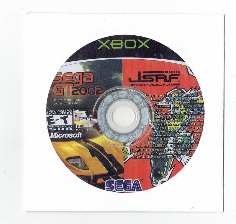 more great Video Games @ www.everything-collectibles.com Sega GT 2002 & JSRF Video Game Microsoft XBOX Disc Only. This Video Game is in good used condition as you can see from the picture tested and works. This is For the Game Only and a generic Sleeve to protect the game in shipment. if you have any further questions please don't hesitate to ask! if your order is over $50 Shipping is FREEE within The U.S.!!!