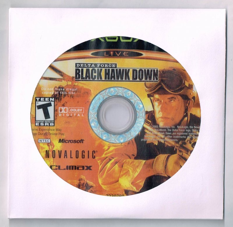more great Video Games @ www.everything-collectibles.com Delta Force Black Hawk Down video Game Microsoft XBOX Disc Only. This Video Game is in good used condition as you can see from the picture tested and works. This is For the Game Only and a generic Sleeve to protect the game in shipment. if you have any further questions please don't hesitate to ask! if your order is over $50 Shipping is FREEE within The U.S.!!!
