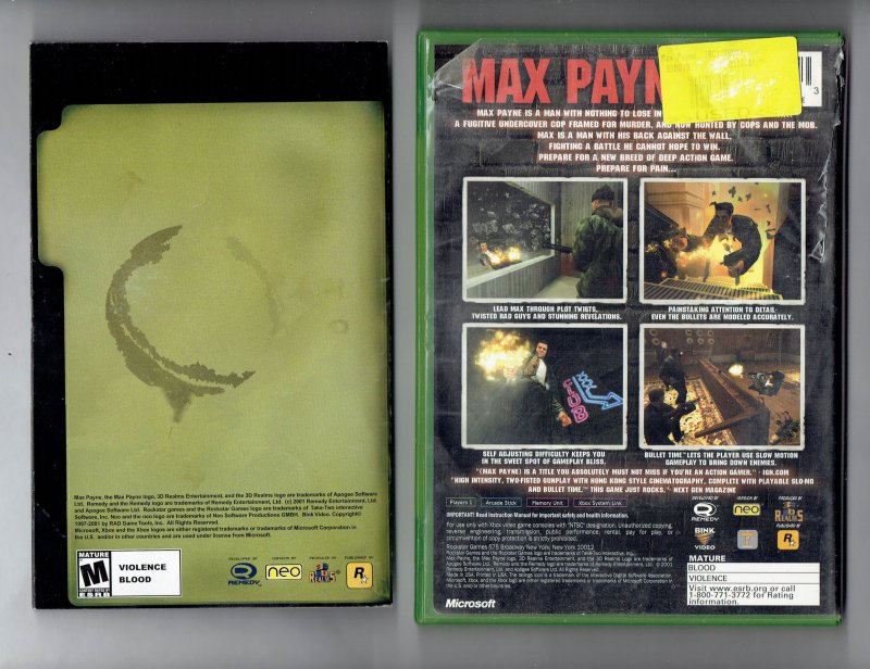 more great Video Games @ www.everything-collectibles.com Max Payne video Game Microsoft XBOX CIB. This Video Game is in good used condition as you can see from the picture tested and works. Comes with Case, Cover Art, Instruction Booklet and Disc. if you have any further questions please don't hesitate to ask! if your order is over $50 Shipping is FREEE within The U.S.!!!