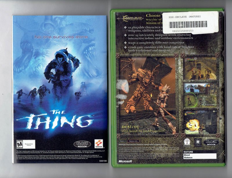 more great Video Games @ www.everything-collectibles.com Enclave video Game Microsoft XBOX CIB Rare HTF. This Video Game is in good used condition as you can see from the picture tested and works. Comes with Case, Cover Art, Instruction Booklet and Disc. if you have any further questions please don't hesitate to ask! if your order is over $50 Shipping is FREEE within The U.S.!!!