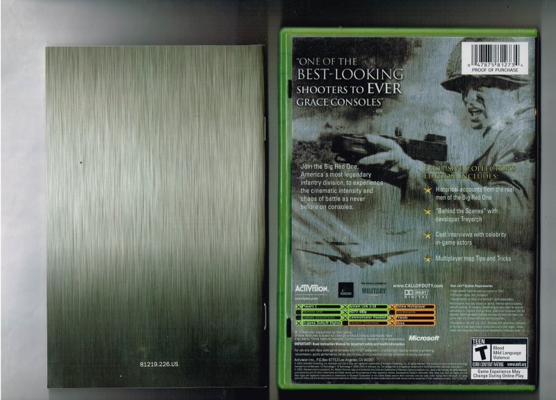 more great Video Games @ www.everything-collectibles.com Call Of Duty 2 Big Red One Collectors Edition video Game Microsoft XBOX CIB Rare VHTF. This Video Game is in good used condition as you can see from the picture tested and works. Comes with Case, Cover Art, Instruction Booklet and Disc. if you have any further questions please don't hesitate to ask! Flat $5 shipping No Matter if you purchase 1 or 100 shipping is only $5 and if your order is over $50 Shipping is FREEE!!!