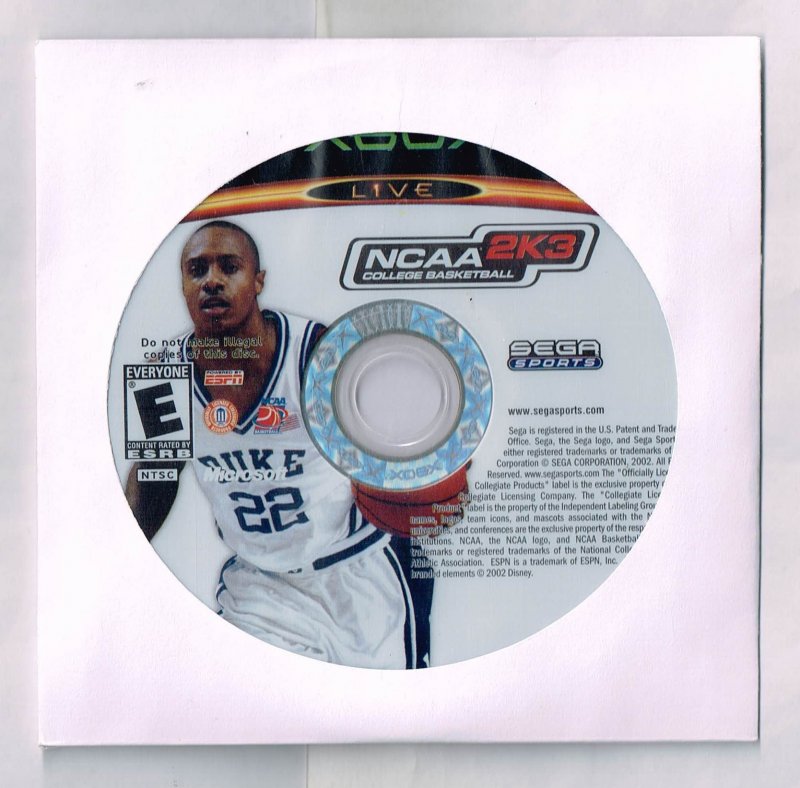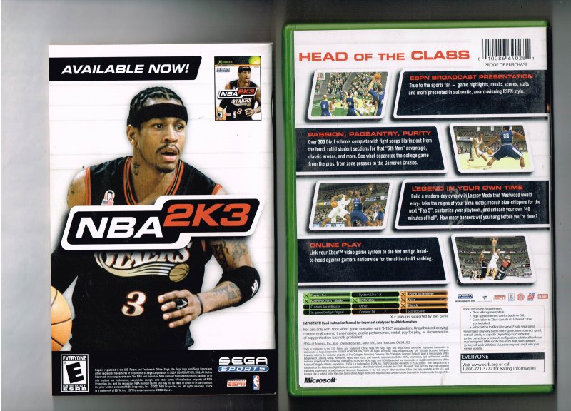 more great Video Games @ www.everything-collectibles.com NCAA College Basketball 2K3 video Game Microsoft XBOX CIB. This Video Game is in good used condition as you can see from the picture tested and works. Comes with Case, Cover Art, Instruction Booklet and Disc. if you have any further questions please don't hesitate to ask! Flat $5 shipping No Matter if you purchase 1 or 100 shipping is only $5 and if your order is over $50 Shipping is FREEE!!!