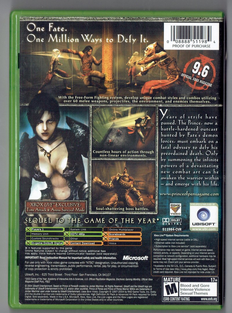 Prince Of Persia Warrior Within video Game Microsoft XBOX CIB
