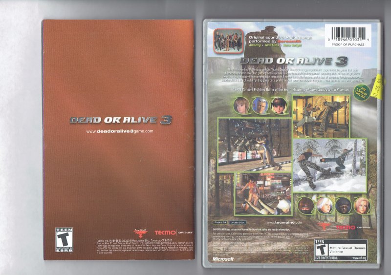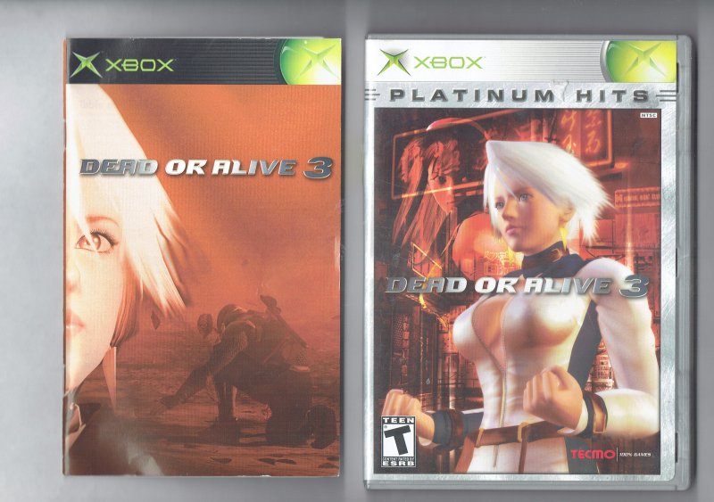 more great Video Games @ www.everything-collectibles.com Dead Or Alive 3 Platinum Hits video Game Microsoft XBOX CIB. This Video Game is in good used condition as you can see from the picture tested and works. Comes with Case, Cover Art, Instruction Booklet and Disc. if you have any further questions please don't hesitate to ask! Flat $5 shipping No Matter if you purchase 1 or 100 shipping is only $5 and if your order is over $50 Shipping is FREEE!!!