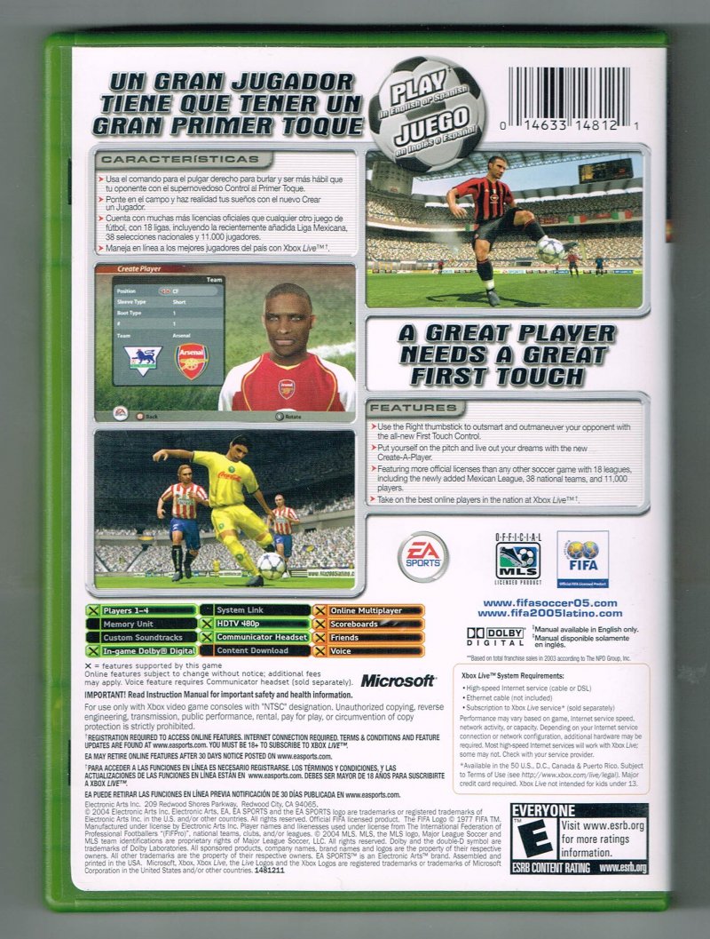 more great Video Games @ www.everything-collectibles.com EA Sports Fifa Soccer 2005 video Game Microsoft XBOX Disc and Case. This Video Game is in good used condition as you can see from the picture tested and works. Comes with Case and Disc. if you have any further questions please don't hesitate to ask! Flat $5 shipping No Matter if you purchase 1 or 100 shipping is only $5 and if your order is over $50 Shipping is FREEE!!!