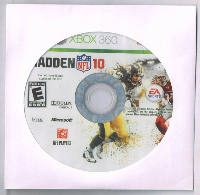 more great Video Games @ www.everything-collectibles.com Madden NFL 10 Xbox 360 video Game Disc Only. This Video Game is in good condition as you can see from the picture tested and works. this is for the Disc Only. if you have any further questions please don't hesitate to ask! if your order is over $50 Shipping is FREEE within The U.S.!!!