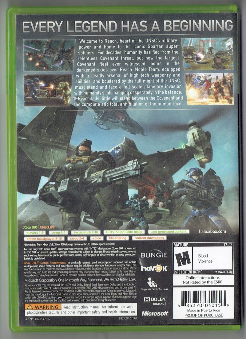 more great Video Games @ www.everything-collectibles.com Halo: Reach Xbox 360 video Game 2006 CIB (Case, Manual and Disc). This Video Game is in good used condition as you can see from the picture tested and works. if you have any further questions please don't hesitate to ask! if your order is over $50 Shipping is FREEE within The U.S.!!!