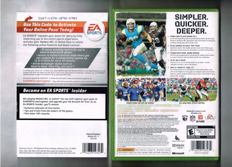 more great Video Games @ www.everything-collectibles.com Madden NFL 11 Xbox 360 video Game CIB (Case, Manual and Disc). This Video Game is in good used condition as you can see from the picture tested and works. if you have any further questions please don't hesitate to ask! if your order is over $50 Shipping is FREEE within The U.S.!!!