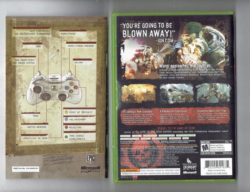 more great Video Games @ www.everything-collectibles.com Gears Of War 2 Xbox 360 video Game CIB (Case, Manual and Disc). This Video Game is in good used condition as you can see from the picture tested and works. if you have any further questions please don't hesitate to ask! if your order is over $50 Shipping is FREEE within The U.S.!!!