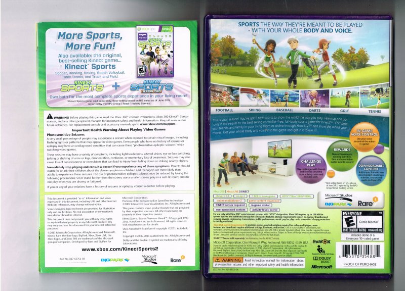 more great Video Games @ www.everything-collectibles.com Kinect Sports Season 2 Xbox 360 video Game CIB (Case, Manual and Disc). This Video Game is in good used condition as you can see from the picture tested and works. if you have any further questions please don't hesitate to ask! if your order is over $50 Shipping is FREEE within The U.S.!!!