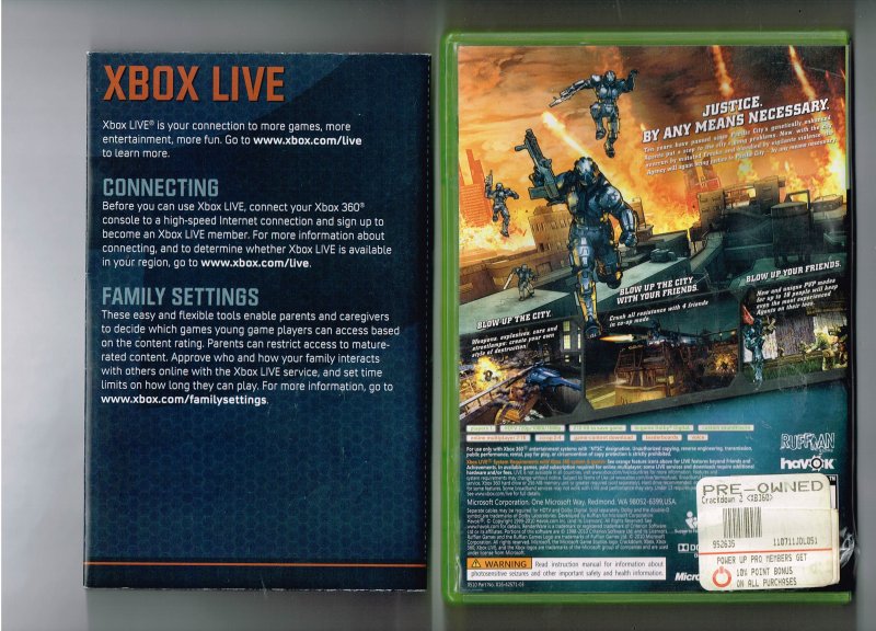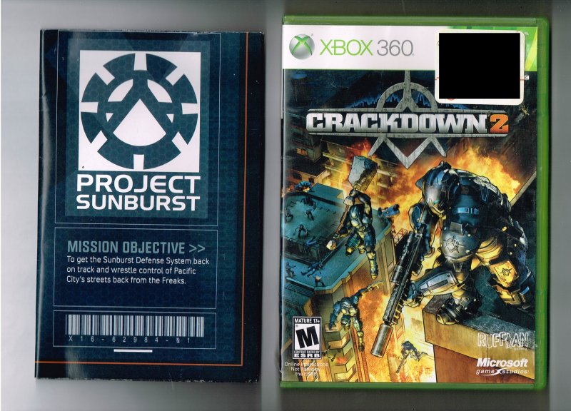 more great Video Games @ www.everything-collectibles.com Crackdown 2 Xbox 360 video Game CIB (Case, Manual and Disc). This Video Game is in good used condition as you can see from the picture tested and works. if you have any further questions please don't hesitate to ask! if your order is over $50 Shipping is FREEE within The U.S.!!!