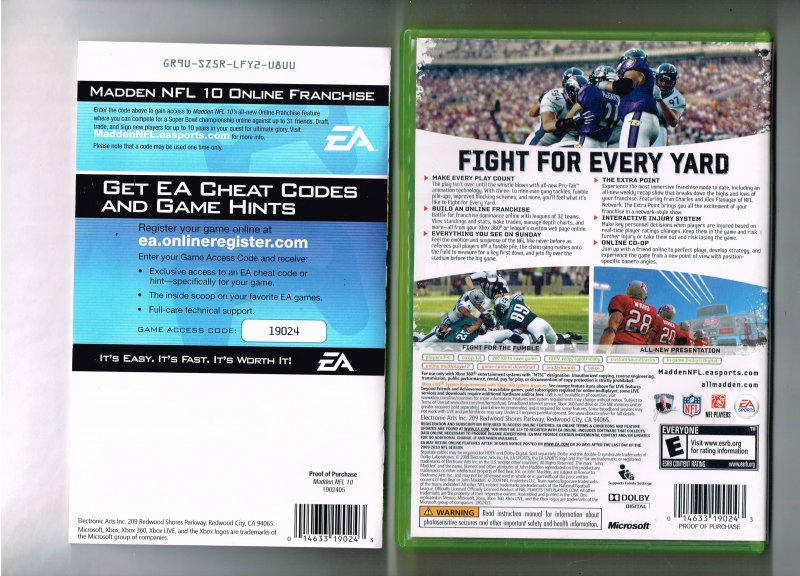 more great Video Games @ www.everything-collectibles.com EA Sports Madden NFL 10 Xbox 360 video Game CIB (Case, Manual and Disc). This Video Game is in good used condition as you can see from the picture tested and works. if you have any further questions please don't hesitate to ask! if your order is over $50 Shipping is FREEE within The U.S.!!!