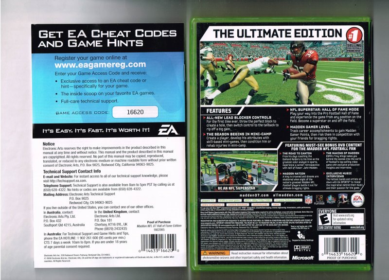 more great Video Games @ www.everything-collectibles.com EA Sports Madden 2007 Hall Of Fame Edition Xbox 360 video Game CIB (Case, Manual and Disc). This Video Game is in good used condition as you can see from the picture tested and works. if you have any further questions please don't hesitate to ask! if your order is over $50 Shipping is FREEE within The U.S.!!!