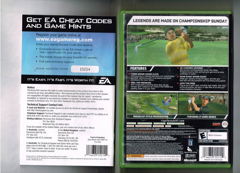 more great Video Games @ www.everything-collectibles.com Tiger Woods PGA Tour 2007 Xbox 360 video Game CIB (Case, Manual and Disc). This Video Game is in good used condition as you can see from the picture tested and works. if you have any further questions please don't hesitate to ask! if your order is over $50 Shipping is FREEE within The U.S.!!!