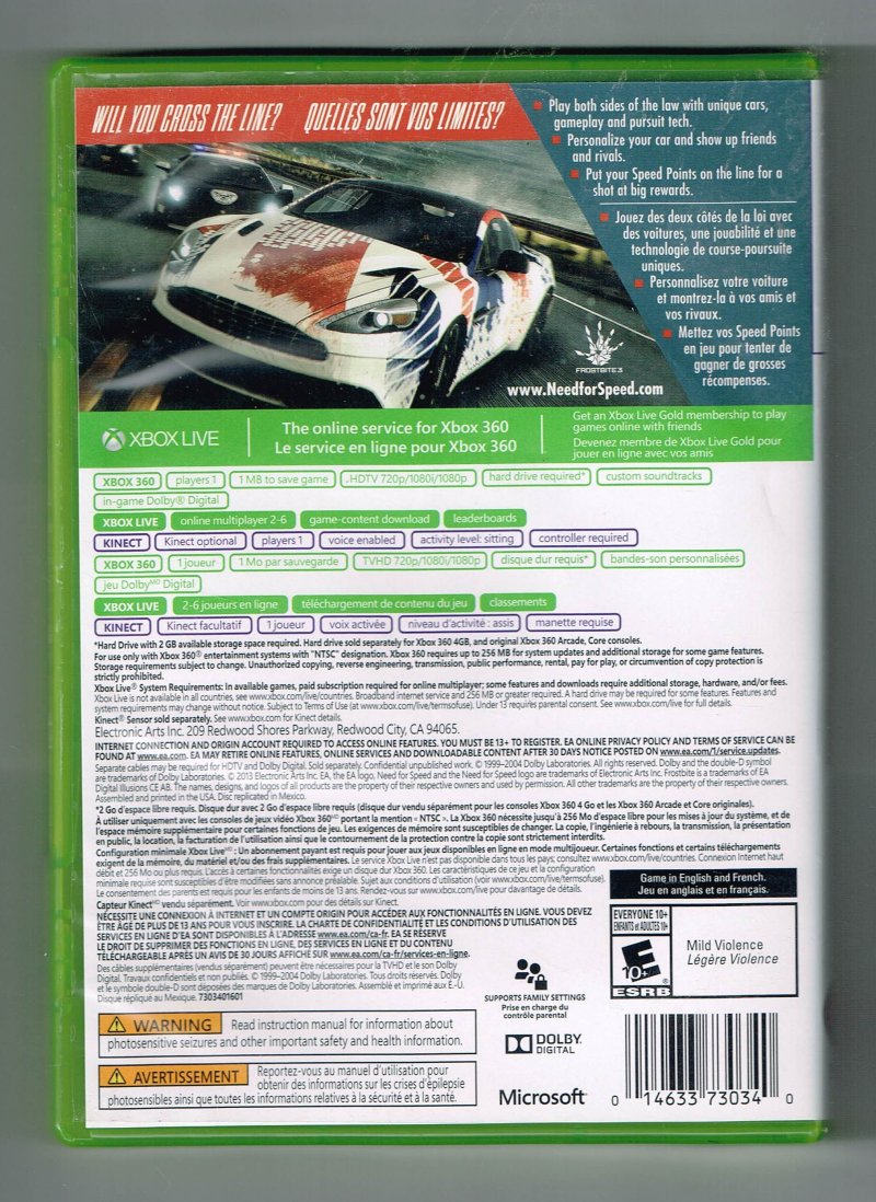 Need For Speed Rivals Xbox 360 video Game Disc and Case