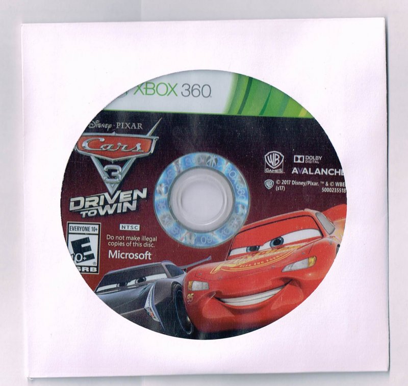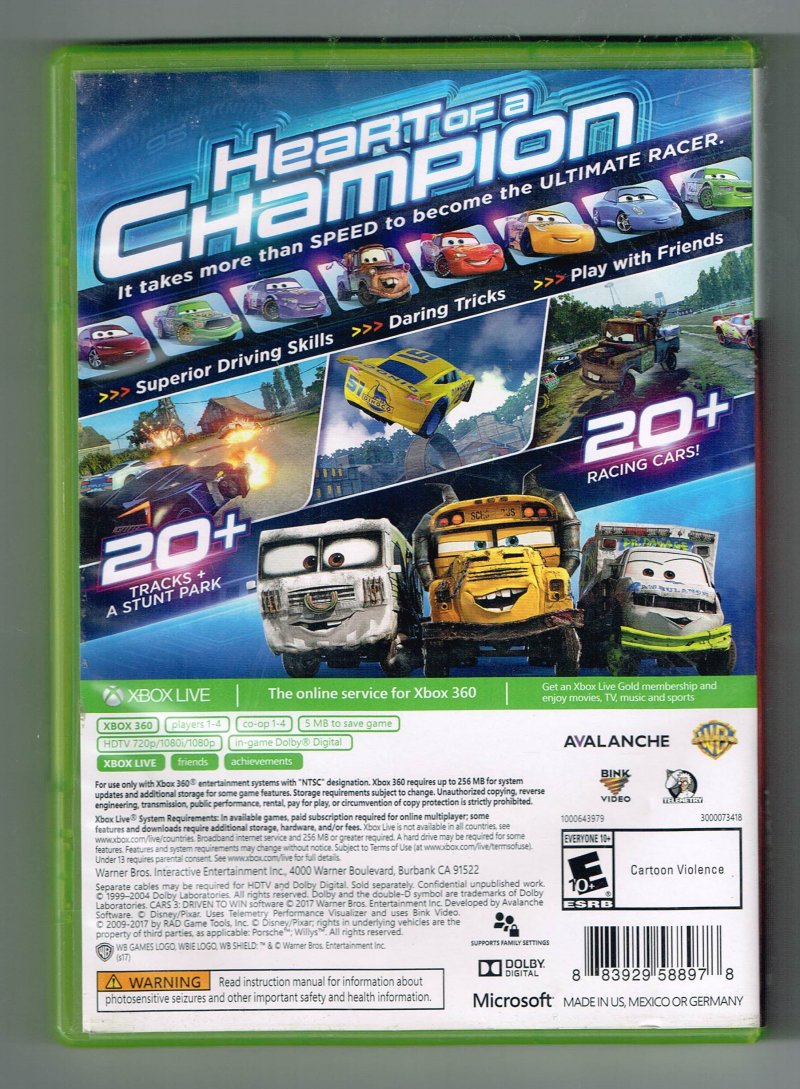 more great Video Games @ www.everything-collectibles.com Cars 3 Driven To Win Xbox 360 video Game Disc and Case. This is for the Disc and Case Only NO Manual. This Video Game is in good used condition as you can see from the picture tested and works. if you have any further questions please don't hesitate to ask! if your order is over $50 Shipping is FREEE within The U.S.!!!