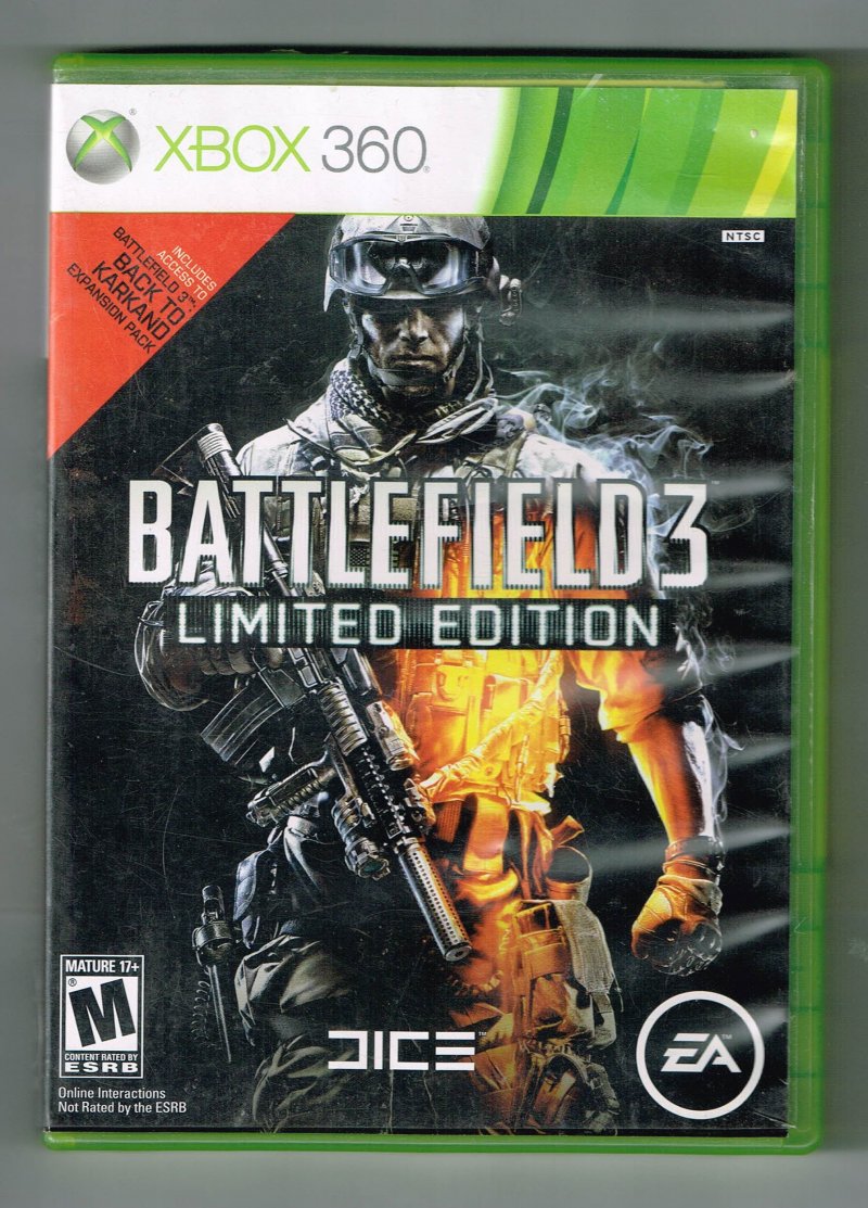more great Video Games @ www.everything-collectibles.com Battlefield 3 Limited Edition Xbox 360 video Game Disc and Case. This is for the Disc and Case Only NO Manual. This Video Game is in good used condition as you can see from the picture tested and works. if you have any further questions please don't hesitate to ask! if your order is over $50 Shipping is FREEE within The U.S.!!!