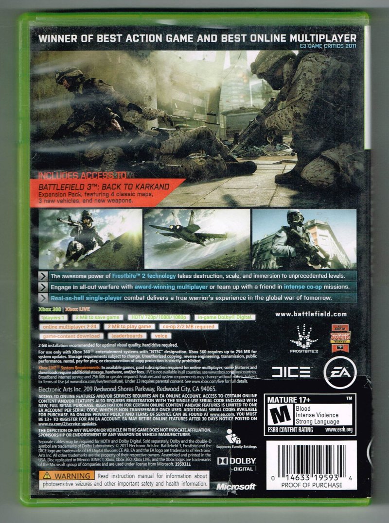 Battlefield 3 Limited Edition Xbox 360 video Game Disc and Case