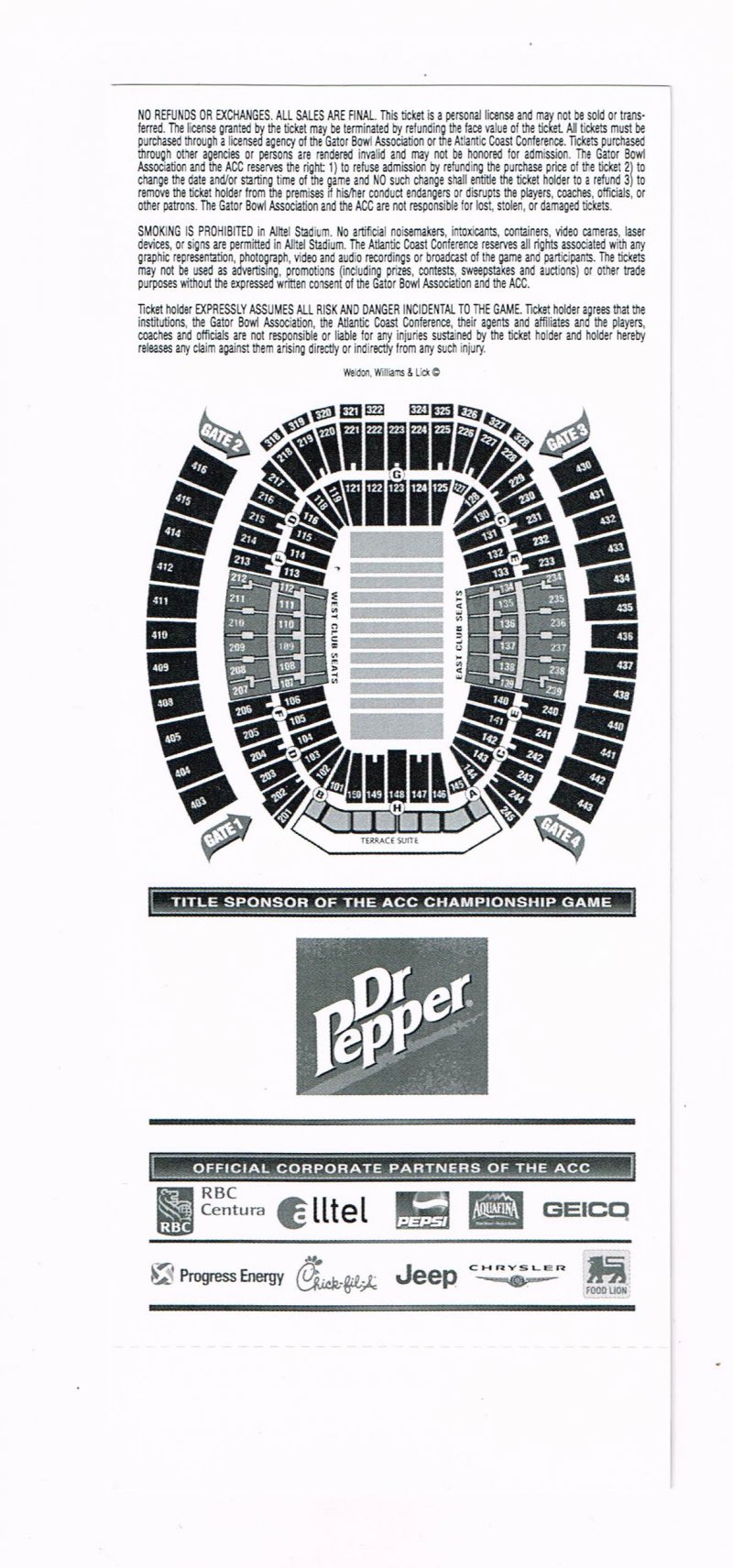 2005 Inaugural ACC Championship Game Full Ticket Virginia Tech Boston College