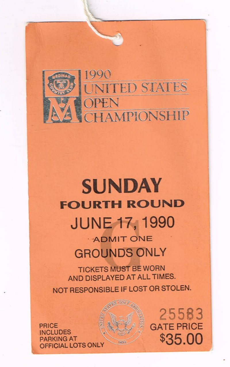 1990 US Open Golf Ticket Stub 4th Tournament Round Sunday 6 17 90 Hale Irwin Winner. This Ticket is in Very Good Condition no rips tears writing or creasing on the ticket a RARE piece of Golf and US Open History if you have any further questions please don't hesitate to ask!