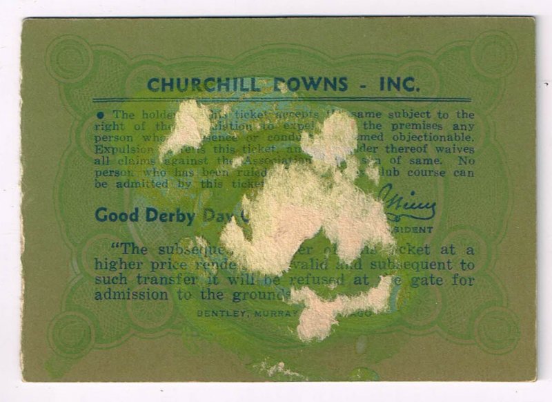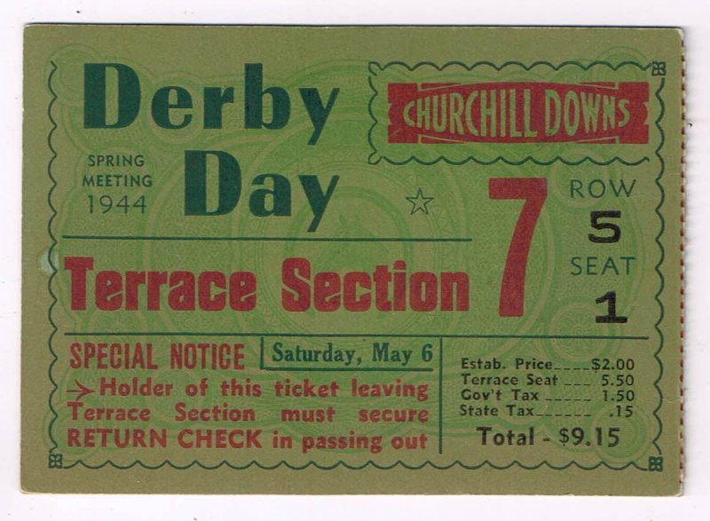 1944 Kentucky Derby Ticket Stub Pensive Winner