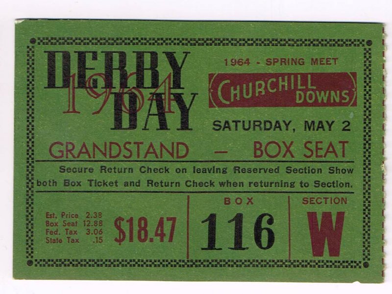1964 Kentucky Derby Ticket Northern Dancer Winner