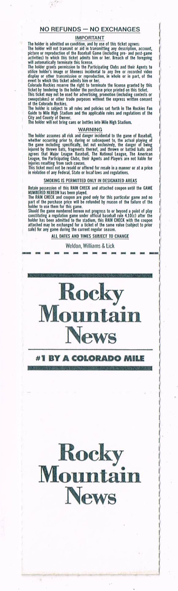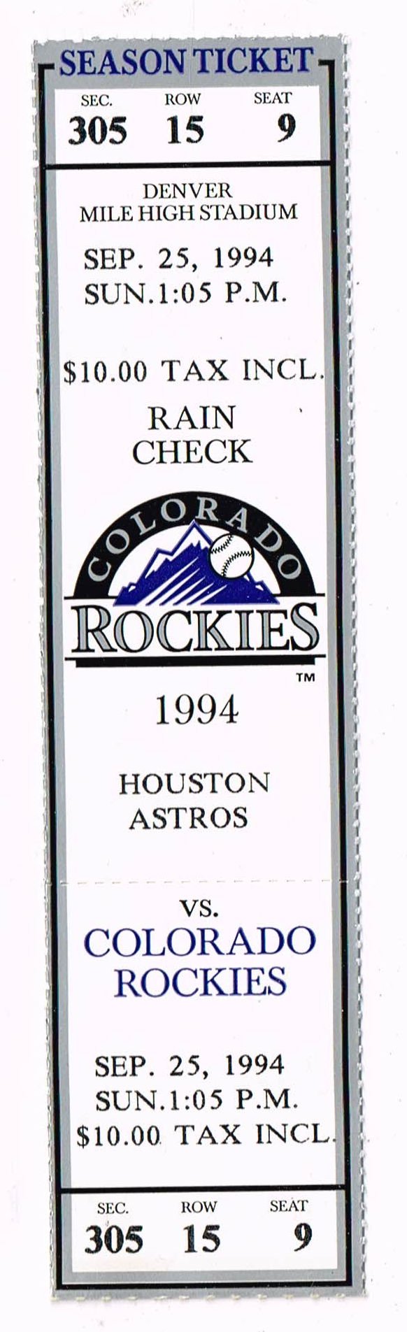 1994 Astros @ Rockies Full Unused Phantom Ticket September 25th Strike Year