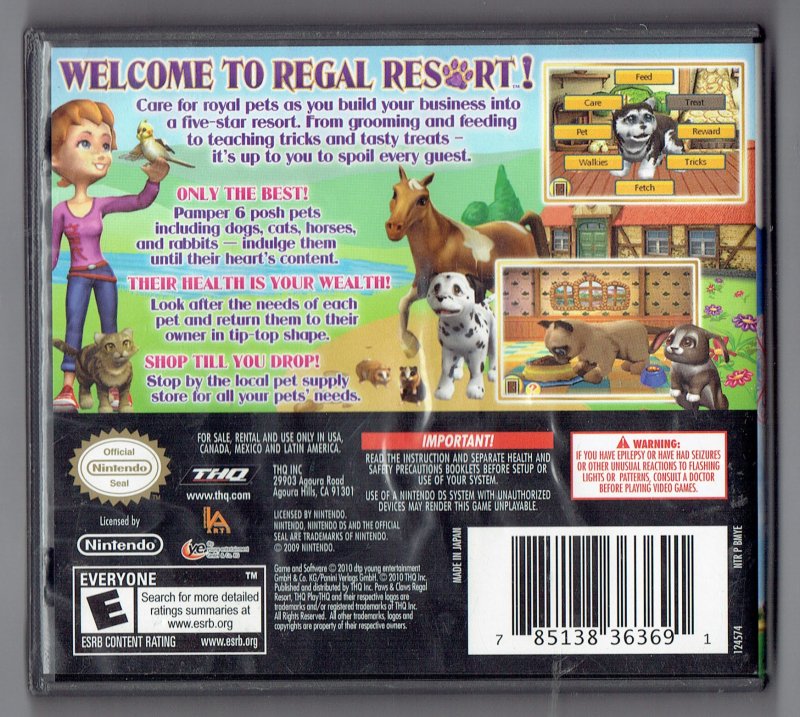 Paws and Claws Regal Resort Nintendo DS Game Case ONLY. This is for the CASE ONLY there is NO game or Manual Included. if you have any further questions please don't hesitate to ask! Flat $5 shipping No Matter if you purchase 1 or 100 shipping is only $5 and if your order is over $50 Shipping is FREEE!!!
